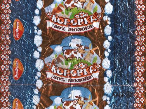Фантик от конфеты "Коровка" фабрики Рот Фронт